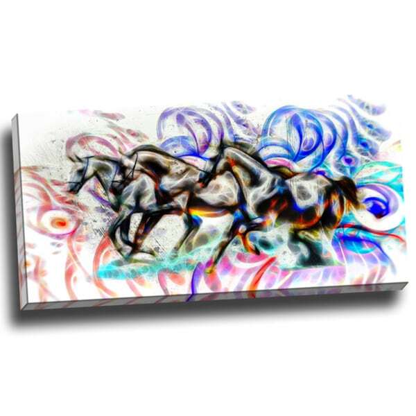Available in single and multi-panel canvas, this animal print design on canvas is printed in high-quality fade-resistant ink on premium quality cotton canvas. This abstract graffiti horses design is sure to be the centerpiece of any room it is placed in. The graphic canvas print is gallery-wrapped around solid wood subframes and carefully packaged ready to hang on the wall. Superior printing technology allows for a crisp, deep canvas print, which is never pixelated.Artist: N/AGraffiti Horses - Animal Canvas Art - Multiple SizesProduct type: Gallery wrapped canvasStyle: ContemporaryFormat: HorizontalSize: OversizeSubject: AnimalsSmall option image dimensions: 16 inches high x 32 inches wide x 1 inch deep5-piece option image dimensions: 32 inches high x 60 inches wide Free Shipping Over $49.99* Details Graffiti Horses Animal Canvas Art (Multiple Sizes) Product Description: Available in single and multi-panel canvas, this animal print design on canvas is printed in high-quality fade-resistant ink on premium quality cotton canvas. This abstract graffiti horses design is sure to be the centerpiece of any room it is placed in. The graphic canvas print is gallery-wrapped around solid wood subframes and carefully packaged ready to hang on the wall. Superior printing technology allows for a crisp, deep canvas print, which is never pixelated. ArtistN/A Graffiti Horses - Animal Canvas Art - Multiple Sizes Product typeGallery wrapped canvas StyleContemporary FormatHorizontal SizeOversize SubjectAnimals Small option image dimensions16 inches high x 32 inches wide x 1 inch deep 5-piece option image dimensions32 inches high x 60 inches wide