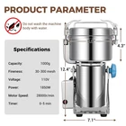 Grain Grinder – Multifunctional Spice & Herb Mill The Grain Grinder is a high-performance, versatile kitchen appliance designed to handle a variety of dry ingredients. With a powerful 2000W motor and a 1000g capacity, this grinder effortlessly crushes grains like soy, corn, rice, and wheat, as well as spices such as star anise, pepper, and rosemary. It also handles seeds, nuts like peanuts and walnuts, sesame, and other dry materials with ease. Operating at an impressive 28,000 RPM, this grinder features three specialized blades—grinding, rotary, and removal—that work together to pulverize ingredients quickly and efficiently. It can achieve a fine with mesh sizes ranging from 50 to 300 in less than a minute, making it perfect for home chefs and professionals alike. Built with durable food-stainless steel, the Grain Grinder is designed for long-lasting use. Safety is a top priority with this appliance: it automatically shuts off in the event of an overload, preventing damage and ensuring safe operation. When this happens, a simple reset with the red button restores the grinder to working order. For optimal performance, we recommend the grinder in intervals of 3 minutes, allowing a 5-10 minute rest period between uses. This grinder boasts a compact, user-friendly design, complete with a snap-on lid, seal ring, and non-slip mat base for added stability during use. The cleaning process is hassle-—just wipe down the interior with a moist towel (avoid rinsing with water to protect the motor). the grinder in a dry, ventilated area to keep it in top condition. Ideal for use in homes, restaurants, and kitchens, the Grain Grinder offers a professional-grinding experience for anyone looking to streamline food preparation. Whether you're grinding grains for baking or spices for cooking, this multifunctional mill delivers fast, precise results. If you have any questions or need assistance, feel to ! Safety Lid & Overload Protection:Made with food-stainless steel, the Corn Grinder features overload protection that automatically shuts off the power to ensure safety. Simply press the reset button to continue. For best results, use for no more than 3 minutes, followed by a 5-10 minute rest. Stainless Steel Construction:The Grain Grinder is made with high-quality stainless steel that meets food safety standards. Equipped with durable 304 stainless steel, three-layer blades and a 25,000 RPM grinding speed, it achieves a fine (50-300 mesh) for improved efficiency. Designed for dry materials only; wet or oily ingredients cannot be ground. Multipurpose Spice Grinder:Perfect for grinding a variety of dry materials including grains, soy, corn, rice, coffee beans, spices, herbs, sesame, peanuts, and more. Ensure ingredients cover the blade and fill no more than 2/3 of the jar to allow proper blade movement during grinding. 180° Swing :The swing design allows easy movement during use, ensuring more uniform and finer grinding. Simply swing the machine to pour out the instead of lifting the entire grinder. The spice grinder also features a timer (0-5 minutes) that stops automatically, saving you time and effort. Wide Range of Uses:The Grain Grinder is perfect for use in homes, kitchens, restaurants, laboratories, food stores, and more, offering a modern alternative to traditional grinders. Feel to if you need any assistance! Cleaning & Storage:After grinding, wipe the grinder with a moist towel—do not rinse with water to avoid damaging the motor. in a dry, well-ventilated area, away from direct sunlight, and ensure it’s fully dry before covering and storing.