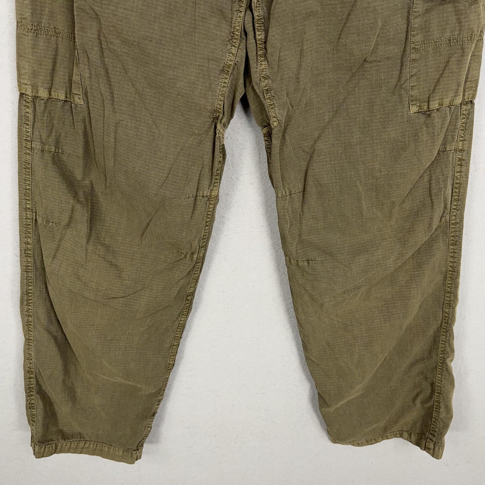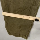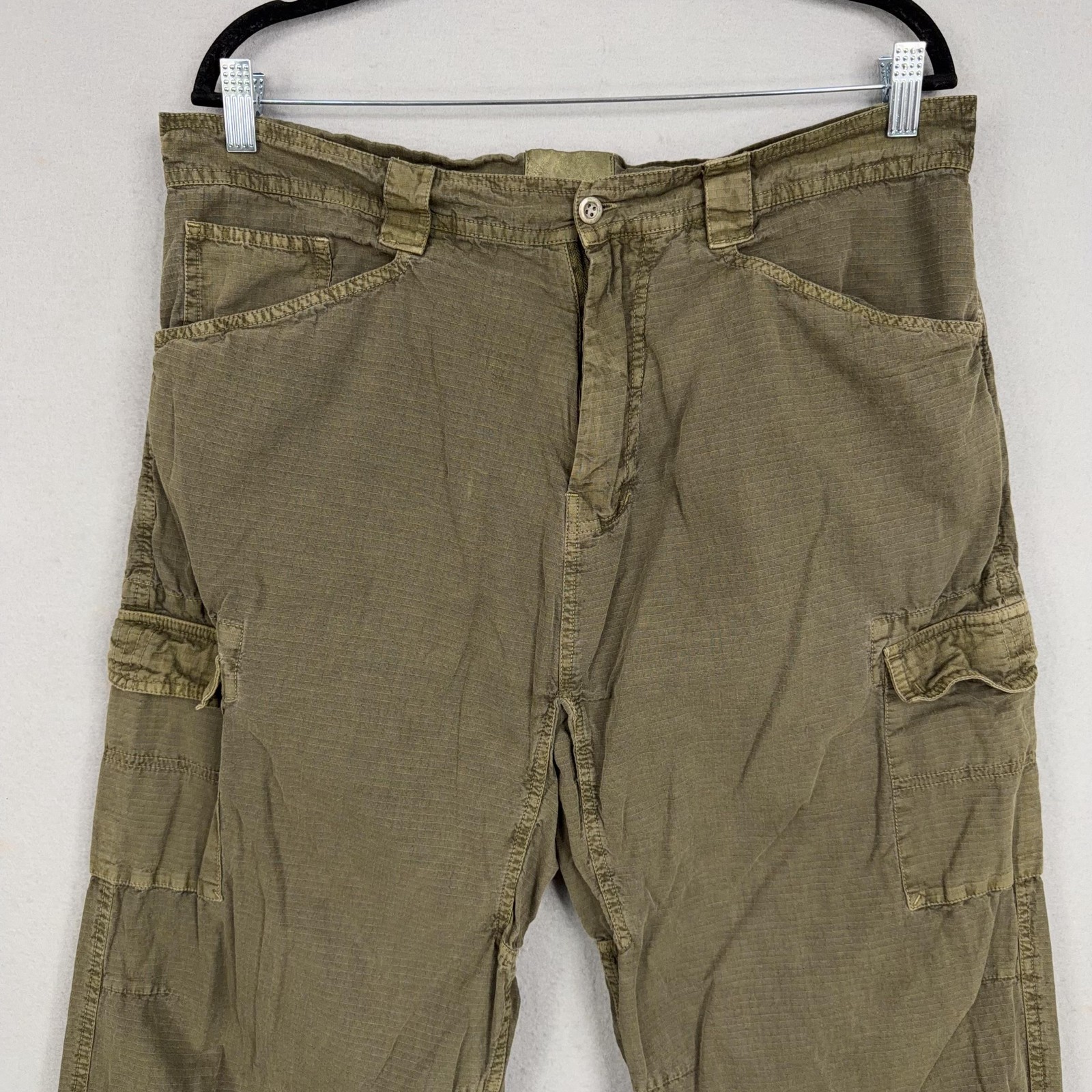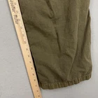 Gramicci Cargo Pants Mens 36 Olive Green Ripstop Elastic Cuff Hiking Outdoor Shows typical wash wear and light fading. Minor fraying at pocket edges and hems with wrinkling. Button and zipper work; no holes or major stains observed. Brand: Gramicci Item: Mens cargo pants in olive green ripstop fabric with elastic cuffs and a gusseted crotch for mobility. Color: Olive Green Size on tag: 36 Visible branding: GRAMICCI label at waistband; small GRAMICCI tag on back pocket. Details: Zip fly with button closure, belt loops, front hand pockets, flap cargo pockets, rear flap pockets, articulated seams, elasticized hems; lightweight ripstop suitable for hiking and outdoor wear. 22553 Measurements: - Previous washings may change the sizing written on the tag. - Please refer to the photos above for all measurements. - Please compare our measurements to that of one of your favorite garments. - Please note, item measurements are approximate . All items are bagged and sealed after being photographed, then stored in a smoke free environment to ensure the item is exactly the same as when photographed. All items have been washed per eBay standards & policies. I carefully package and ship daily. Feel free to contact me with any questions.