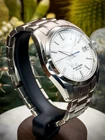 Grand Seiko SBGA011 “Snowflake” – Because Regular Timepieces Just Don’t Cut It Ever wanted a watch that looks like it was handcrafted by samurai and blessed by a snowstorm on Mount Iwate? Meet the Grand Seiko SBGA011 “Snowflake.” This isn't just a watch—it’s a flex in titanium, an ode to Spring Drive wizardry, and the kind of timepiece that makes even Swiss collectors do a double take. The dial? Pure, untouched snowfall frozen in time—no two glances at it are the same. The movement? Spring Drive, which means you get the hypnotic, smoothest gliding seconds hand in the game. The case? Lightweight titanium, so your wrist stays comfy while flexing this masterpiece. Condition - Excellent Box and Papers - Yes, complete set Includes rarely worn bracelet and additional strap (pictured) Shipping - Includes free shipping in US overnight fully insured via FedEx Ships from Phoenix, AZ Please reach out with any questions. We take pride in every timepiece we sell, ensuring each watch undergoes a thorough inspection before being listed. Every watch purchased from us is guaranteed to be 100% authentic and precisely as described.