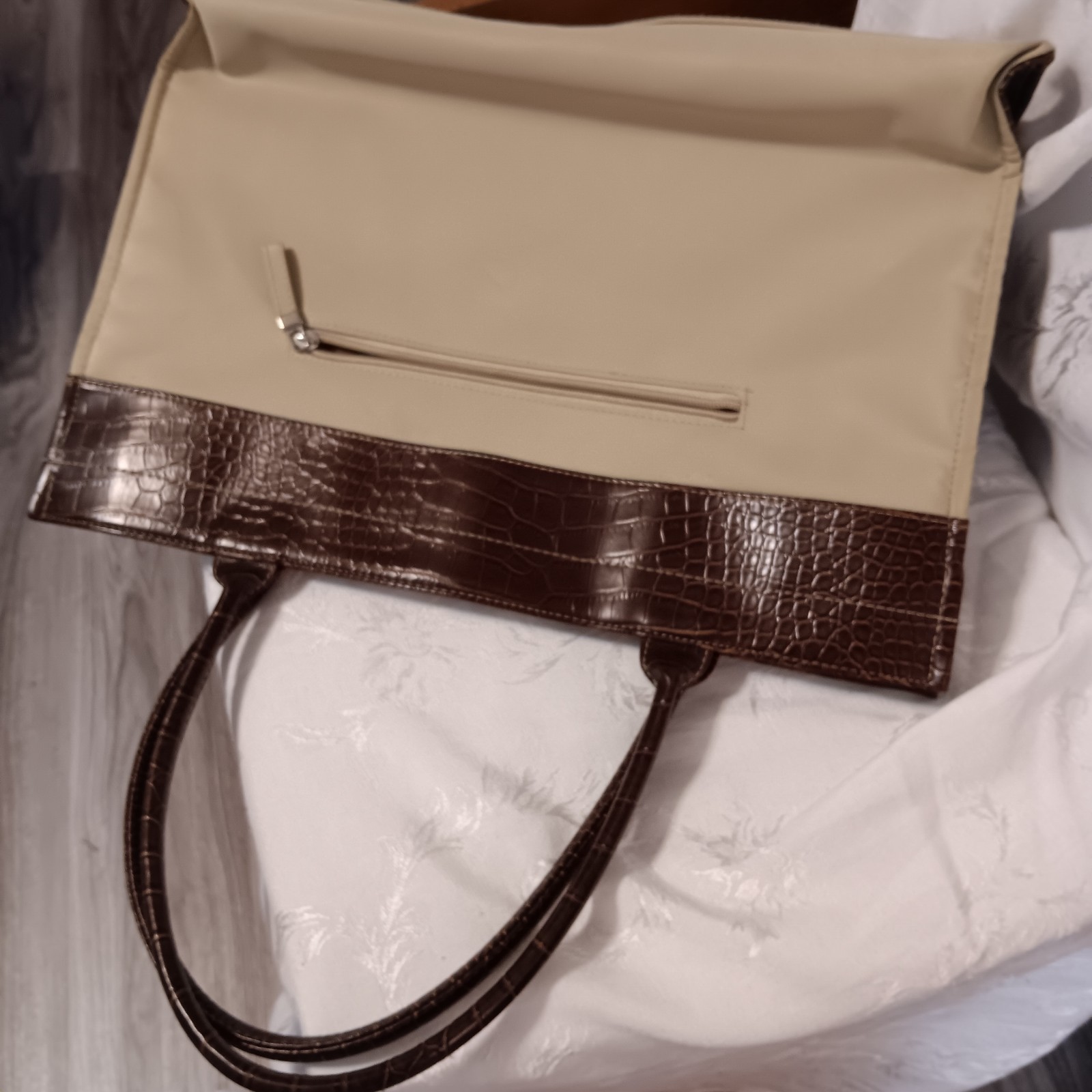 Camping enthuist. The Camp Grandma Bag Tote Purse is a unique and stylish option for the modern woman on-the-go. Made with tan canvas and leather trim, this large rectangular purse features a zip closure and silver hardware accents. The brown top handle adds a touch of sophistication, making it perfect for travel, casual outings, or workwear. With a vintage camping theme and personalized picture holder frames, this tote is not only practical but also a statement piece that will turn heads.