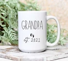 Grandpa Est. 2021 Mug Gift For Grandpa To Be Gift For New Grandpa Baby Product Details.. This high quality 11oz. ceramic white mug has a premium hard coat that provides crisp and vibrant color reproduction sure to last for years. Perfect for all hot & cold beverages. The highest quality printing possible is used. It will never fade no matter how many times you wash it. Material: 100% Ceramic. Print both sides. Dishwasher and Microwave Safe. High Gloss + Premium White Finish. Printed in the U.S.A. Personalized & Custom. We support personalized and custom mug to add custom, when placing an order, you can add notes to the "order note" in shipping address section. Also you can contact us directly via message. Shipping Info. Ready to ship in 1 to 2 business days, All products are made-to-order and proudly printed in the United States. Shipped by USPS and DHL, You will receive your order in 5-7 days. Replace & Refund. All products are defective during shipping broken, chipped will be replaced free of charge. You are not satisfied with the product, we will refund 100% money to you. If any other issues arise, please do not hesitate to message, we would be more than happy to assist you.