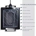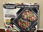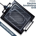 Indoor grill 16 inches x 14 inches. Electric smoke-less (Smoke-less technology gives you less smoke. Fatty foods may have more smoke) grill. As seen on TV. Easy to clean. PFOA free. Large grilling surface. Virtually no smoke! Electric adjustable temperature. Diamond infused coating. Triple layer non-stick granitestone brand with titanium & diamond infused (Lab created diamond dust infused). For household use only. 3 year limited warranty. ETL listed - Intertek. Made in China. NON-STICK SURFACE It has a diamond-infused cooking surface that provides a super nonstick cooking experience while giving meat, fish or poultry distinctive grill marks. ADJUSTABLE TEMPERATURE It is designed with easy-to-use temperature dial with 4 Settings (Warm, Low, Medium and High) to meet cooking needs, from heating food to grilling steak. COOL-TO-TOUCH HANDLES The grill crate is constructed with a pair of stay cool handles that never gets hot to the touch even during cooking! PORTABLE ELECTRIC GRILL Easy to put together, and easy to pull apart for space-saving storage. Non-electrical parts are dishwasher-safe. NON-TOXIC & SAFE It is made of high quality and durable aluminum material that is PTFE, PFOA and PFOS free for safer and healthier grilling of food.
