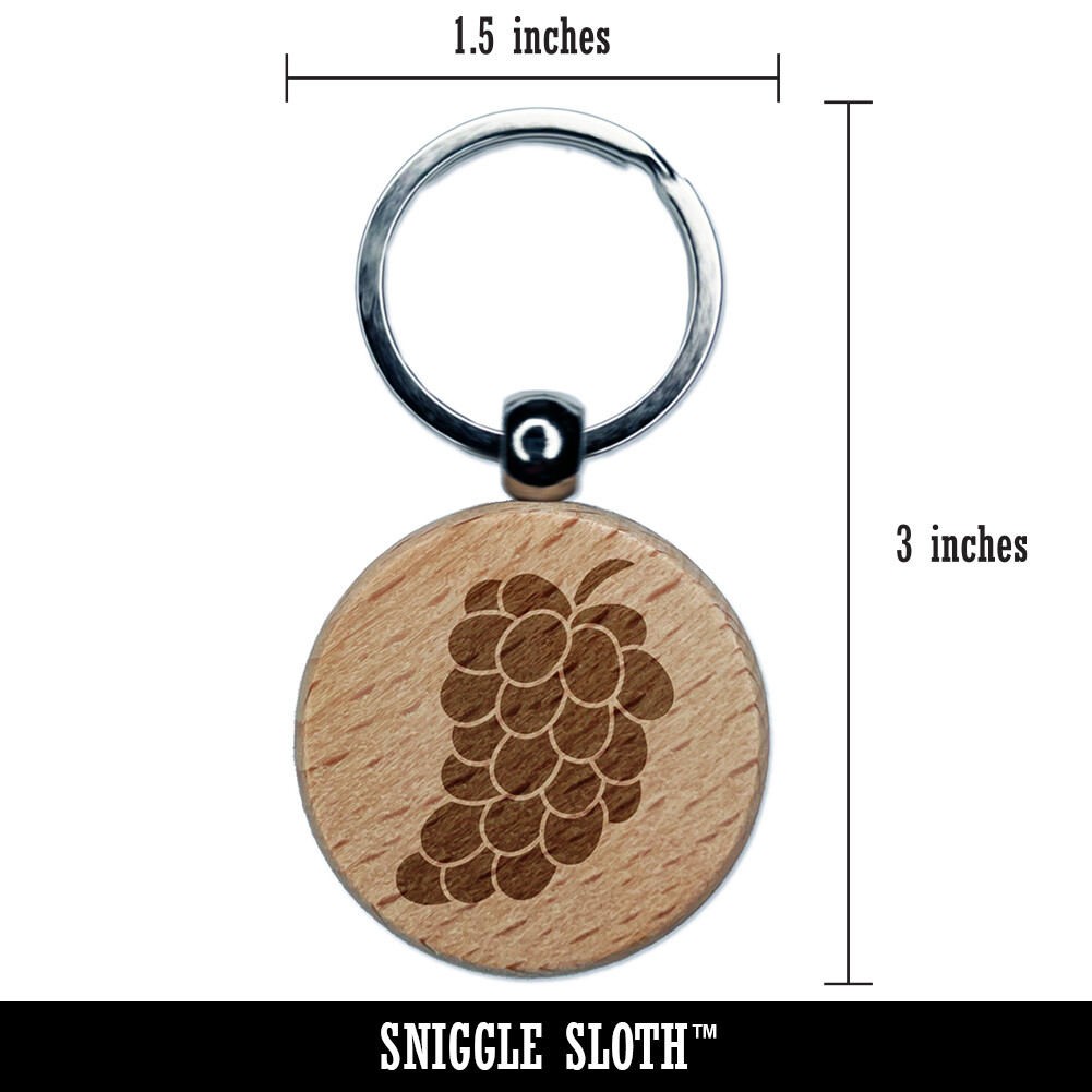 Grapes Fruit Solid Wood Engraved Round Keychain Charm Tag