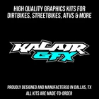 This listing is for our Lancaster Series - WHITE graphics kit. It fits the Kayo Sports ATV Fox-70, AY-70, Storm-70 for All years on OEM plastics. The graphics kit includes all the pieces shown in the listing. These graphics are made-to-order so make sure you order the correct kit. Message us if you have any questions. Plastics not included. *** WE OFFER FREE CUSTOM RIDER NAME & NUMBER *** Your custom name & number must be provided during checkout under “message to seller” or thru eBay messaging immediately after placing the order . Otherwise, graphics as shown in the listing are shipped. Message us for other customization (i.e. logo removal/addition, color tweak, etc.) - additional charges may apply. Graphic Thickness Options: All our graphics are specifically designed for extreme motorsports vehicles such as motocross bikes, ATV, snowmobiles, side-x-sides, etc. Our graphics are high performance, gloss finish and have UV protected brilliant colors. 9 MIL Thin – Easy Go 3 Mil thick laminate paired with 6.2 Mil vinyl with ultra-aggressive adhesive Limited durability against scratches & falls Ideal for someone who wants a new look at affordable prices 16 MIL – On/Off the Road 1 0 Mil thick laminate paired with 6.2 Mil vinyl with ultra-aggressive adhesive Highly durable against scratches and falls. Easy to install 21 MIL – Pro Edition 15 Mil thick laminate paired with 6.2 Mil vinyl with ultra-aggressive adhesive Ultra-durable against scratches and falls Super glossy finish *********************** All orders shipped within 1-2 business days. DESIGNED, PRINTED, AND SHIPPED FROM TEXAS, USA Import duties, taxes, and charges are not included in the price. These charges are the buyers responsibility. Graphics installed directly on to plastic fuel tanks are known to bubble. This is normal and unavoidable due to the fuel vapor that permeates through plastic fuel tanks. All returns are subject to a 20 percent restocking fee. All trademarks shown in the listing are the property of their respective owners. Printed colors may not exactly match colors displayed on the screen. Kalair GFX is in no way endorsed or affiliated with any dirtbike manufacturer. Fits years: All Years Fits models: Kayo KMB60 on OEM Plastics