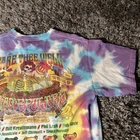 Embrace your love for the Grateful Dead with this vibrant Tie Dye Keya T-Shirt, a must-have for any die-hard fan. The Unlimited Devotion Tour graphics capture the spirit of the band's legendary performances, making it an iconic addition to your wardrobe. Crafted from soft, ring-spun cotton, this shirt promises comfort and style with every wear. This versatile T-Shirt is designed for the modern fan, featuring a classic crew neck and short sleeves suitable for all seasons. Proudly made in the USA, it reflects a blend of music-inspired themes with American heritage. Whether you're out for a casual day or attending a concert, this preshrunk, easy-care tee in size Large will keep you looking great without compromising on your passion for the Grateful Dead. Condition notes- T shirt is in great condition- front graphic has some fading, back graphic has significant fading. Brand tag is present, size tag is not- it is a large, but be sure to check out all of our pics for full view of condition and measurements.