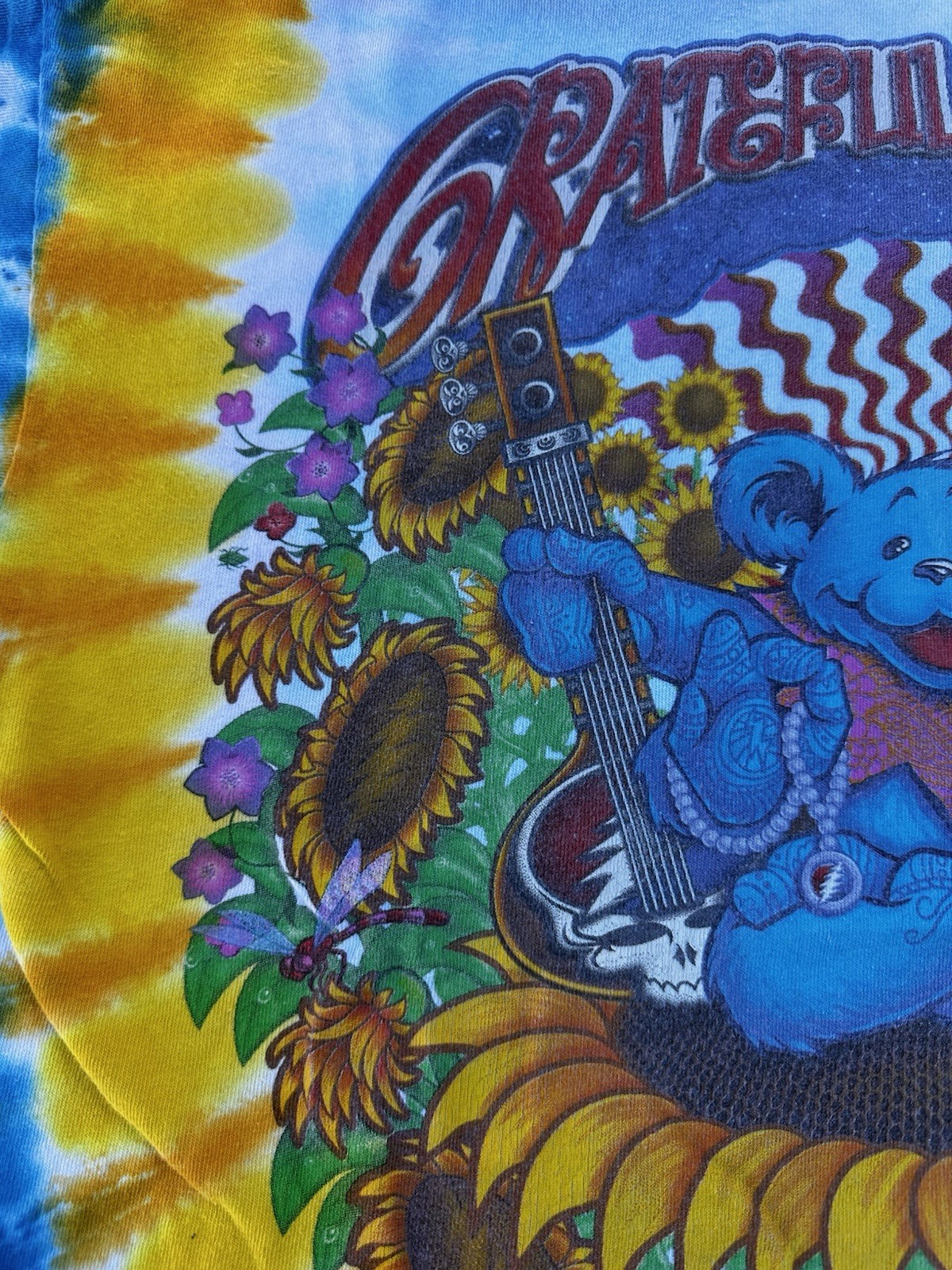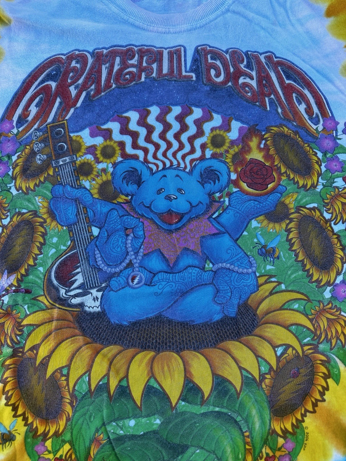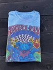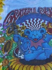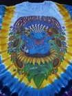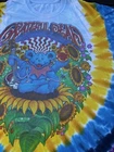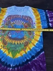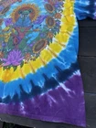 This Liquid Blue T-Shirt features a vibrant tie-dye design with the iconic Grateful Dead logo. Made of comfortable cotton knit fabric, this regular fit tee has short sleeves and a crew neck. It's a vintage piece from the 1990s, made in the United States, and is perfect for all seasons. The T-Shirt is personalized with a graphic print of Jerry Garcia and is part of the Grateful Dead character family. With accents of the Liquid Blue logo, this T-Shirt is perfect for fans of the band and vintage clothing. It's a classic piece that brings a touch of fun and retro style to any wardrobe. The size is washed off. Please see detailed photos of measurements