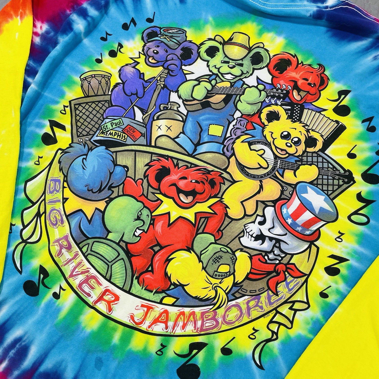 Grateful Dead Shirt Mens XL Big River Jamboree Tie Dye Long Sleeve Concert Bear Color---Multi Stains or Holes---Some red spots on sleeve, hard to notice Actual Measurements--- Please see pictures for actual measurements Please check out my other listings and bundle for a better price and shipping discount.