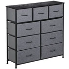 Specifications: Color: Grey Material: MDF+Steel+Non-woven Fabric+PP Product Weight: 33.4 lb Product Size: 39.3"L*11.8"W*39.3"H Load Capacity of the Table Top: 44 lb Load Capacity of Each Drawer: 11 lb Features: Multipurpose: 9 drawers dresser fits in many locations throughout your home. It can be used as a storage stand in entryway, as a storage dresser in bedroom, as an storage unit in living room, as a toy storage in nursery, or placed inside the closet to create extra storage. High Quality: Strong steel frame, durable wood board, adjustable plastic feet and premium fabric drawers all contribute to its sturdy construction to ensure durability against wear and tear over time. Stylish & Smart: Simple and modern style makes it fit to any decor. Lightweight design and 8 removable drawers are convenient for daily use. It works well in small areas while providing plenty of storage space, and mixes & matches with Somdot storage dressers or chest of drawers for a unique home style. Easy Assembly: Hardware is included for hassle-free assembly. Follow the instruction and you can put it together in a few steps.