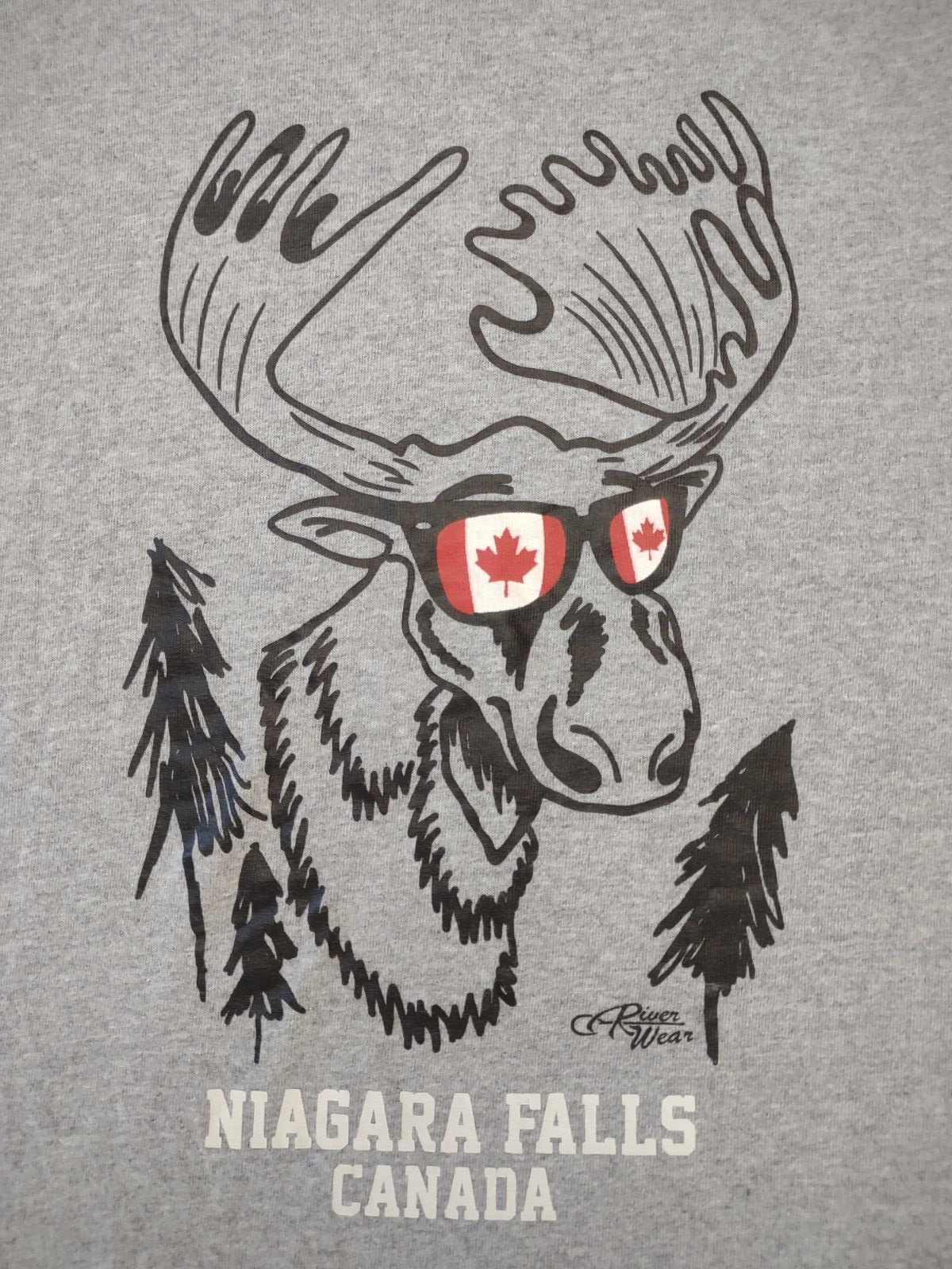 adult's short sleeve t-shirt River Wear brand gray with image on front of Moose wearing sunglasses size M (Please refer to measurements below!) 90% cotton, 10% polyester Great pre-owned condition! Has one minor stain / blemish on back left side (see photos). No other flaws to speak of. Measurements lying flat: Bust (pit to pit): 19 inches. Length (from nape of neck to bottom hem): 25 inches. Policies and Disclosures: RETURNS: Returns are accepted within 30 days of purchase. Buyer is responsible for return shipping. All items from this store come with an identification tag; Item(s) must be returned in original condition with the I.D. tag intact for a refund. SHIPPING: I do combine shipping when multiple items are purchased. In order to provide you with the least expensive price, you will need to send me a message requesting an invoice with combined shipping. CLOTHING: My goal is to sell only the finest quality new and gently used clothing items in my stores, and I strive for 100% satisfaction with every order. While my home is smoke-free, other pre-owned items from different sources cannot be guaranteed as smoke-free or pet-free. It is assumed that you as the buyer will be cleaning the garment once it arrives to you, so unless there is an obvious stain or odor, the clothing has not been laundered. I felt it was best left up to the buyer so no issues would surface regarding detergent allergies, shrinking, etc. Please note that any must or smoke odors can almost always be completely removed by adding 1 cup of distilled white vinegar to your normal wash cycle. I provide measurements on all my clothing items so that you, as the buyer, can make an informed decision about your purchase. Please use that information to compare it with a garment that fits you well to determine if the item will work for you. Seller will not assume responsibility for return postage on items that do not fit. COMMENTS: Please note that every item I sell is described to the best of my knowledge and ability, however, I am a human being, so occasionally I do make mistakes. Colors may vary slightly between screens and monitors. Sizing can vary from brand to brand. If you have any questions about the item(s), free to ask and I will do my best to get back with you in a timely manner. If you have any issues with your purchase, please do not hesitate to contact me prior to leaving negative feedback so we can try to resolve the issue. I am flexible and easy to work with. If you see something you are interested in, feel free to make a reasonable offer! (On a side note: Lowball offers are insulting and will be declined.) Take a moment to browse my other items for sale. I offer a large variety of items, with new items daily, so there’s something for everyone! Thanks so much for taking the time to look and have a wonderful day!
