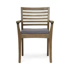 Treat your patio space to this elegant and classic dining chair set. With lovely curves complemented by straight edges, this dining chair is an ideal match for any rustic look. Including water-resistant cushions that have a built-in Velcro strap, these chairs are also a practical addition to any backyard space. Includes: (2) Dining Chairs Frame Material: Acacia Wood Cushion Material: Water-Resistant Fabric Fabric Composition: 100% Polyester Frame Finish: Gray Cushion Color: Dark Gray Hand-Crafted Details Some Assembly Required Product Dimensions: 22.75 inches deep x 22.75 inches wide x 33.25 inches high Seat Dimensions: 18.00 inches deep x 18.00 inches wide x 17.50 inches high Arm Height: 25.50 inches high. ACACIA WOOD - This frame consists of an acacia hardwood that accents the wicker seat. This material is washed with a complementing finish and maintains a sturdy foundation for the sofa that can withstand most weather conditions. WATER RESISTANT CUSHIONS: These padded cushions are made for your comfort with Velcro ties that prevent your cushions from sliding or blowing away in the wind. These water-resistant cushions bring enjoyment without the worry of dealing with spills or any other little accidents you might have. DURABLE AND STYLISH - Our sturdy acacia wood frames not only offers plenty of support and glamor to your patio space, but they will also complement any scheme of décor. Featuring a traditional wood slat look, this classic style takes on a modern upgrade with its straight, clean lines and curved accents. EASY TO MAINTAIN: This set is naturally weather resistant to most elements and its lifespan can be extended by covering or storing your cushions when not in use. Apply teak oil as needed to maintain appearance. ASSEMBLY REQUIRED: Some assembly is required for this chair. All of the instructions and tools needed for assembly are included.