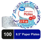 Serve food with ease using Everyday Paper Plates. They're perfect for everyday use or for special occasions. These round plates are extra-strong and soak proof. Use these plates at your next residential barbecue, birthday party, while you're watching the game, at your next pool party or any get together. They are suitable for barbecue dishes, snacks, dinner, lunch, desserts and more. They offer quick and easy disposal and clean-up for when the party is over. This package comes with 100 pleasantly decorated plates making it easy to stock up. These everyday plates are also microwave safe so you can easily re-heat food. Serve up your next meal with Everyday Paper Plates. products provide families with affordable, high quality grocery and household consumable options. With our wide range of product categories spanning grocery and household consumables, we offer you a variety of products for your family's needs. Our products are conveniently available online and in stores nationwide, allowing you to stock up and save money at the same time. Everyday Disposable Paper Plates, 8.5", 100 Count Strong and durable Soak proof Microwave safe Convenient way to serve meals or snacks Ideal for everyday use or special occasions like residential barbecues Makes clean up a breeze Round plates measure 8.5"