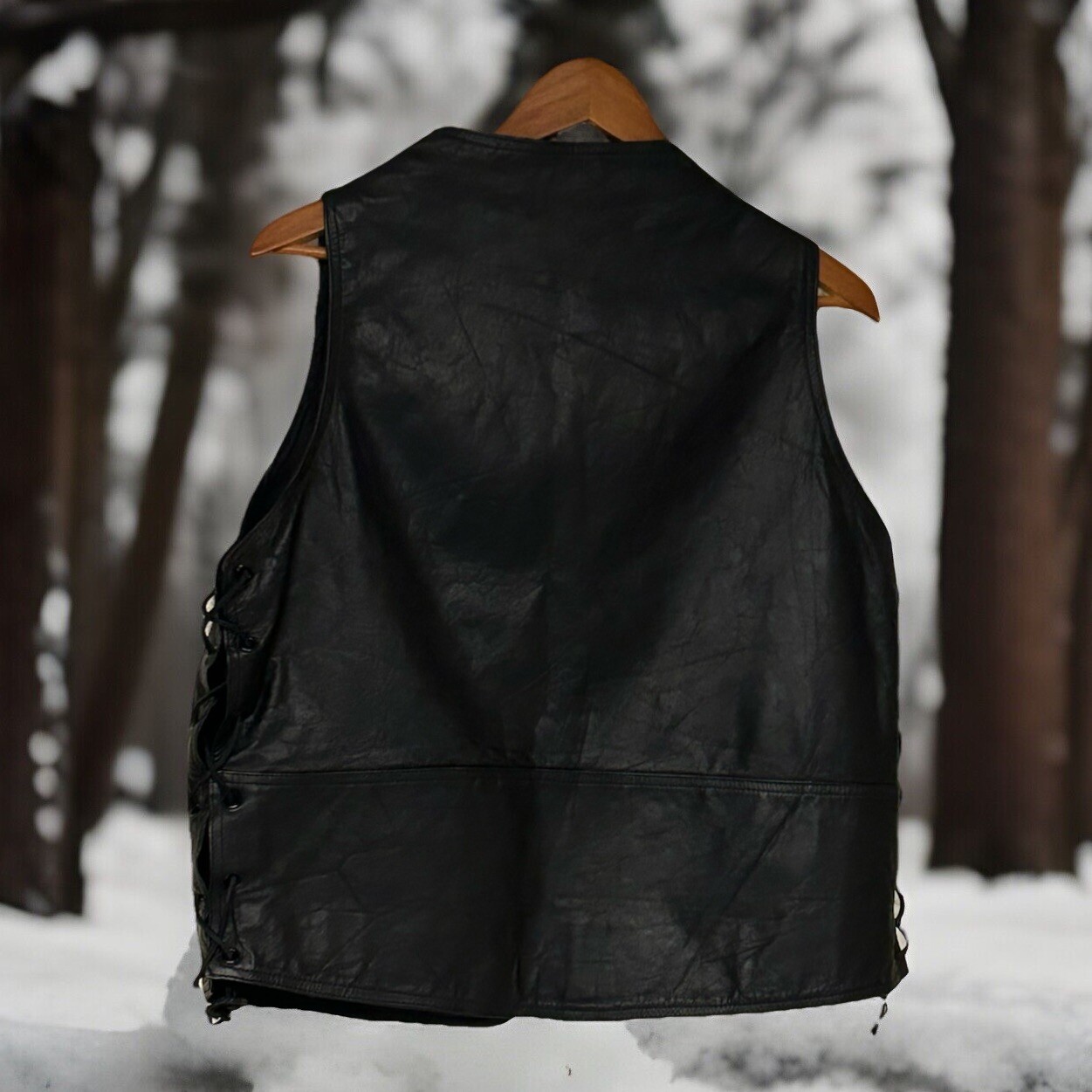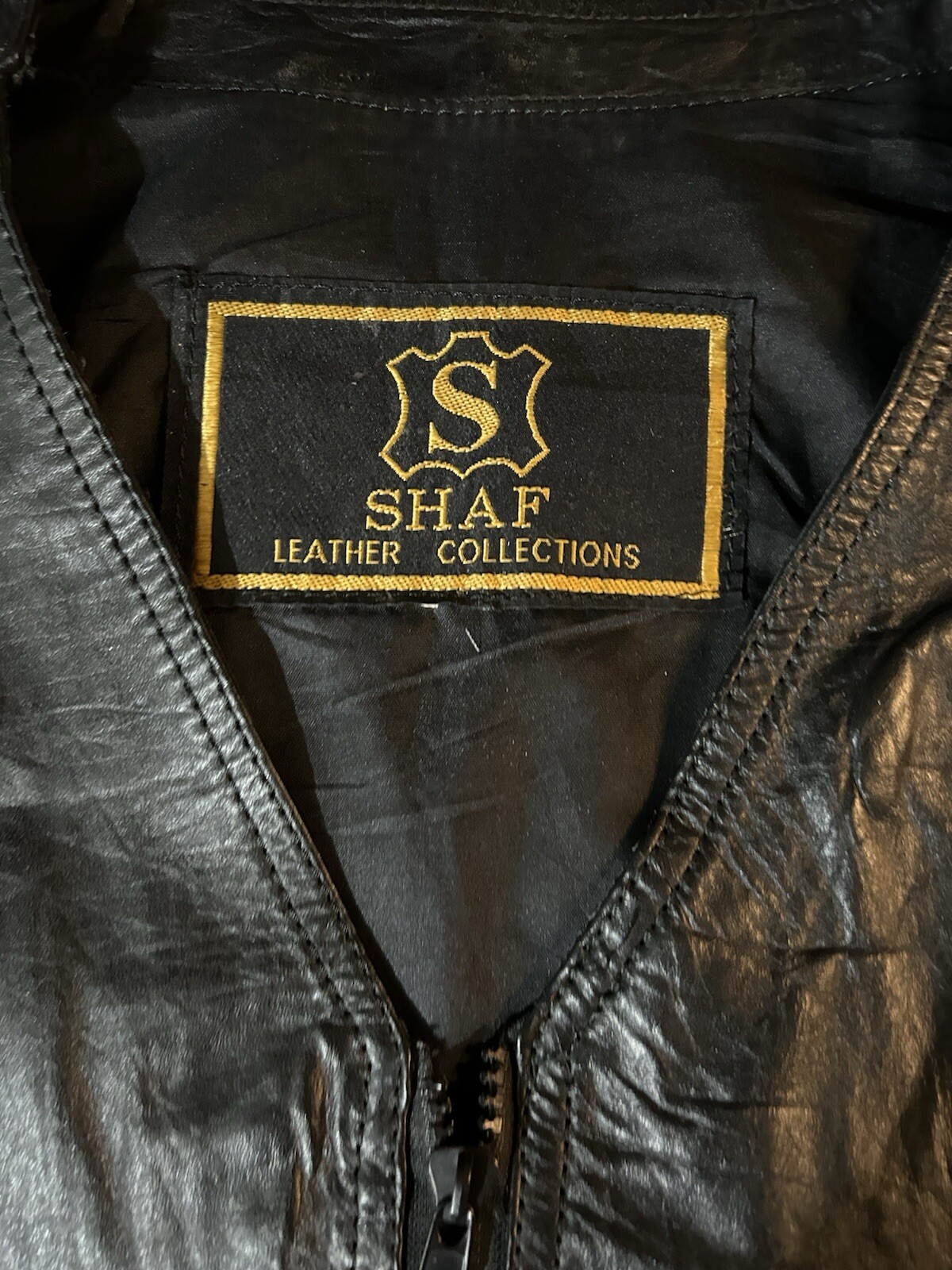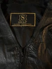 This is a vintage Shaf leather vest designed for men in size 44. The vest is in excellent condition and features a classic biker style with leather side closures and a black solid pattern. The vest has a zip closure, making it easy to wear, and is suitable for various occasions such as travel, parties, workwear, and formal events. With a nylon lining and no insulation material, this all-season vest is ideal for motorcycle riding during winter, summer, fall, and spring. It has a timeless appeal and is crafted from high-quality leather, perfect for adding a touch of rugged style to any outfit.