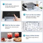 Fast Ice Making: The Greatrue ice maker is equipped with a powerful compressor, providing you with an efficient ice making experience. In just 6 minutes, it can produce 9 bullet-shaped ice cubes, with a daily ice making capacity of up to 33 pounds. Two Sizes of Ice Cubes: Our ice maker can produce two different sizes of ice cubes. Choosing small ice cubes can keep seafood or beer fresh and cool for a long time. Selecting large ice cubes can be used to make refreshing iced coffee or cold drinks, providing rapid cooling effects. Low Noise Design: The Greatrue ice maker features soundproof design to ensure that the machine won't disrupt your daily life with noise, producing less than 40 decibels of noise during ice making. Self-Cleaning Function: This desktop ice maker is equipped with a self-cleaning function, which can be activated by pressing the switch button for 3 seconds, enabling quick and easy cleaning to ensure that you enjoy clean ice cubes. The ice maker also comes with practical accessories including an ice scoop and a detachable ice basket. Easy Operation: The intuitive control panel simplifies operation, allowing you to enjoy fresh ice in just 3 simple steps. Indicator lights will alert you when water is insufficient or the ice basket is full, ensuring that the ice maker operates efficiently at all times.