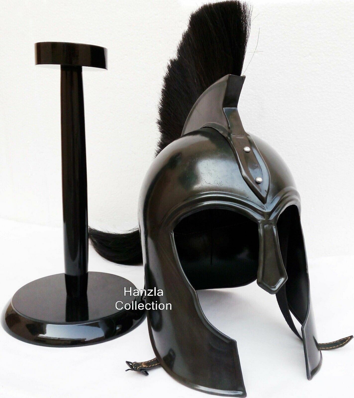 PRODUCT DESCRIPTION:- Free Helmet Stand Welcome To My Store PREMIUM QUALITY MEDIEVAL CRUSADER HELMET: This Is An Actual Replica From The Roman Centuries Medieval Greek Corinthian Armor Helmet With Black Plume Troy helmet Role play Home Décor And Gift Items Condition: 100% new and high quality ONE WEARABLE CRUSADER HELMET MANY NAMES: This Metal Helmet is called by many names in this era like Dark Crusader Helmet, Holy Crusader Helmet, Steel Combat Crusader Helmet, Templar Knight Crusader Helmet. Products Size :- Front To Back 9 inches Ear To Ear 8.2 Inches (Approx.) Circumstances :- 26.2 Inches (Approx.) Weight :- 1.500 KG (Approx.) Material :- Iron, Plume With Leather Liner Finish :- As Show In Picture (Brass Antique ) This is a Reproduction Item, Not Sold As Antique. Good · Piece of Collection. Track Page Views With Auctiva's Counter