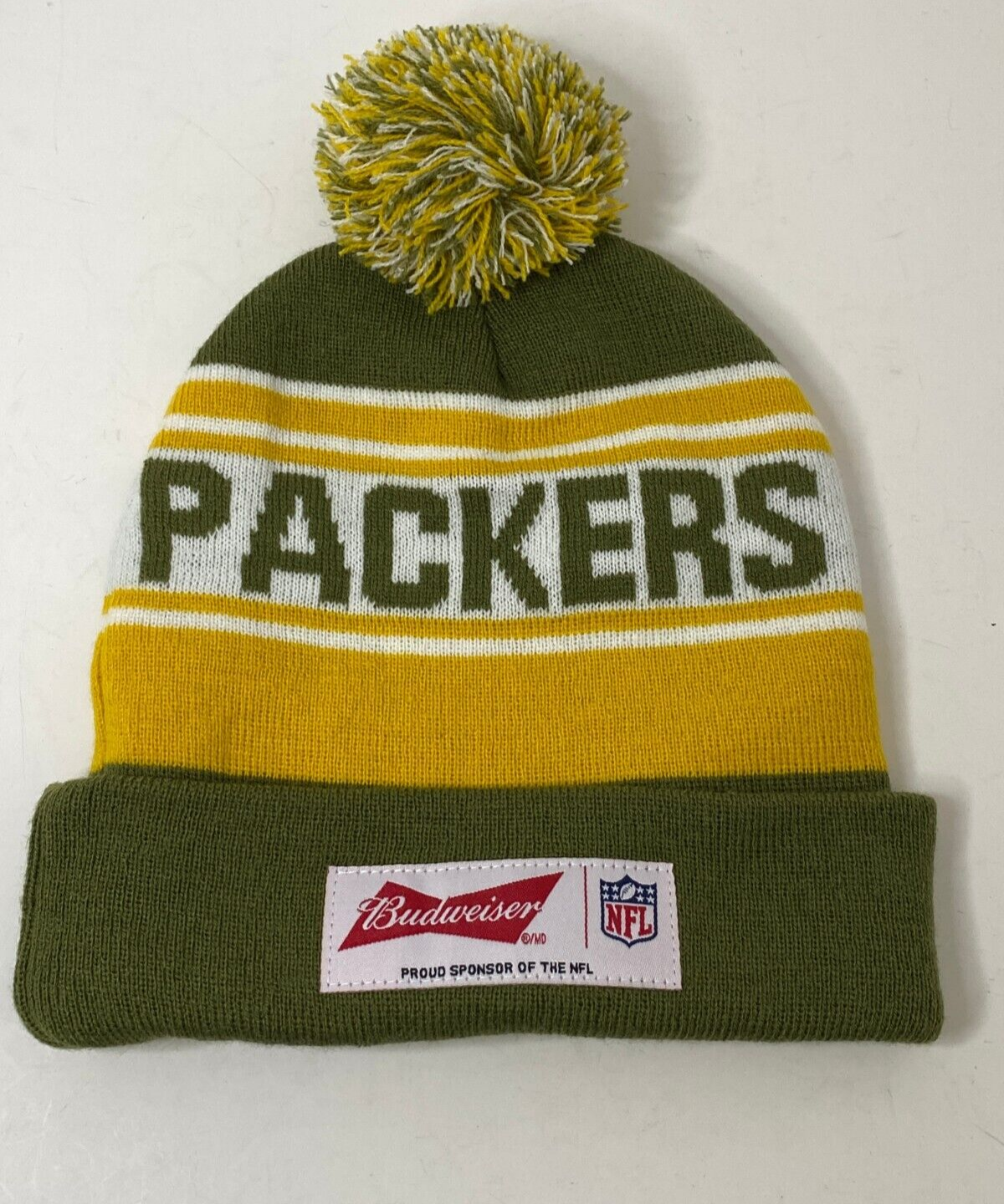 HomeGreen Bay Packers 2 Logo Budweiser Beanie Winter Hat Toque Cuffed Pom Knit