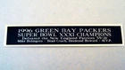 THIS PURCHASE IS FOR THE NAMEPLATE ONLY !!!!!!! BOBBY'S HANG-UPS PREMIUM QUALITY ACRYLIC DISPLAY CASES AND CUSTOM ENGRAVED NAMEPLATES SINCE 1999 THESE NAMEPLATES ARE GREAT FOR DISPLAY CASES, FRAMED AND MATTED PHOTOS, SHADOW BOXES, PLAQUES, ETC. WE SPECIALIZE IN CUSTOM ORDERS OF ALL NAMEPLATES. WHETHER IT'S FOOTBALL, BASEBALL, BASKETBALL, HOCKEY, GOLF, BOXING OR ANY PERSONALIZED NAMEPLATE THAT YOU MAY NEED. WE CAN MAKE JUST ABOUT ANY NAMEPLATE THAT YOU ARE LOOKING FOR. OUR NAMEPLATES ARE TRIPLE ENGRAVED TO GUARANTEE CRISP, READABLE TEXT. NAMEPLATES ARE HAND POLISHED BEFORE SHIPPED TO MAKE SURE THE ENGRAVING REALLY STANDS OUT. ALL NAMEPLATES HAVE HIGH QUALITY DOUBLE SIDED TAPE TO ENSURE IT WILL STAY IN PLACE. PLEASE CHECK OUT OUR EBAY STORE, AND CHECK OUT ALL OF OUR ACRYLIC DISPLAY CASES AND NAMEPLATES. IF YOU DON'T SEE THE NAMEPLATE YOU ARE LOOKING FOR OR IF YOU ARE LOOKING TO PLACE A CUSTOM ORDER, PLEASE FEEL FREE TO EMAIL US AND WE WILL GET WORKING ON YOUR ORDER RIGHT AWAY. THANK YOU! THIS PURCHASE IS FOR A GREEN BAY PACKERS NAMEPLATE. IT IS BLACK ON BRASS BACKED ON POLISHED GOLD PLATING. THE NAMEPLATE MEASURES APPROX 1.25" X 6" IN TOTAL WITH ENGRAVED TEXT THAT READS: 1996 GREEN BAY PACKERS SUPER BOWL XXXI CHAMPIONS Defeated the New England Patriots 35-21 Mike Holmgren ~ Head Coach, Desmond Howard ~ M.V.P. IF YOU ARE PURCHASING DIFFERENT TEAM OR PLAYER NAMEPLATES, AND DIFFERENT SIZES AT THE SAME TIME, PLEASE USE THE SHOPPING CART FEATURE AND PLEASE REQUEST A TOTAL BEFORE MAKING PAYMENT TO ENSURE YOU GET THE PROPER COMBINED SHIPPING DISCOUNT. Be sure to add me to your favorites list !