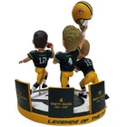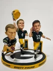 Green Bay Packers Triple Quarterback Bobblehead Set Featuring Aaron Rodgers, Brett Favre and Bart Starr Individually Numbered to Only 1,008 This triple quarterback bobblehead puzzle set joins together at the base to form the Green Pack Packers logo. Each bobblehead is approximately 8 inches tall and each one comes in a collector's box. Your bobbleheads will be brand new and opened only for inspection!
