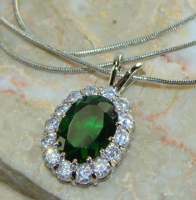 Item Type: Necklace Weight: 8 g Material: - silver plated Main stone: Chrome Diopside Quartz Other stones: White Topaz Inner circumference: 18 " inch Drop Part: 1" Stamp / Mark:- Condition: New