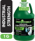 Say hello to our strongest clog remover and goodbye to slow-moving drains. Our Green Gobbler Industrial Strength Hair & Grease Clog Remover formula quickly dissolves hair, grease and toilet paper - clearing clogs and removing hard water and mineral deposits. This 1 Gallon container of Industrial Strength gel is 3X thicker to stick to clogs in toilets, sinks, showers and more. It’s safe for all pipes and septic systems, and it’s free of odors and fumes. That’s right. No bleach or harsh chemicals. Break through the toughest clogs with Green Gobbler Industrial Strength Gel. EASY TO USE: Forget the plumber. Pour Green Gobbler in standing water and it will do the rest. The Industrial Strength gel is 3X thicker than our standard formula to better cling to clogs and keep your pipes flowing properly. ELIMINATE THE TOUGHEST CLOGS: Liquefy hair, grease, toilet paper, soap scum, organic material, flushable wipes and more. It uses a proprietary chelating agent to clear clogs and remove hard water and mineral deposits. WORKS ON: Toilets, sinks, showers, tubs, and drains. It's safe for all pipes and septic tanks.