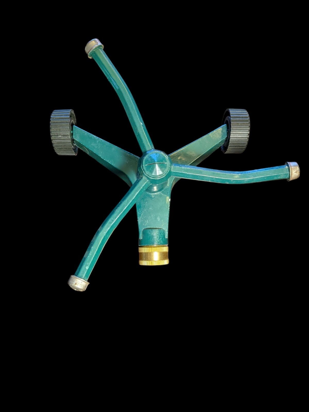 The Green Metal Revolving 3-Arm Rotary Sprinkler with a Wheeled Base is a durable and efficient lawn sprinkler from the brand Rotary. Made of high-quality metal, this sprinkler features three arms for watering various parts of your yard or garden. The green color adds a touch of style to your outdoor watering equipment, while the wheeled base makes it easy to move around as needed. This rotary sprinkler is a reliable choice for maintaining a well-watered lawn and garden.
