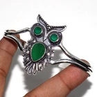 Green Onyx 925 Silver Plated Owl Gemstone Bangle FreeSize Valentine Gifts JW