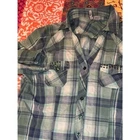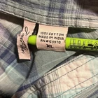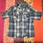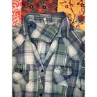 Live Potion, get your live on. Green plaid shirt. Long sleeve, can be buttoned up. 2 pocket front. Rhinestones galore. Baby green buttons. Western style. The size is XL.