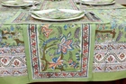 WELCOME Beautifully handcrafted Wooden Block Printed Cotton Table Cover, created by local artisans of India, designed using classic, ethnic and royal prints as inspirations. Our block printed textiles are not only Eco-friendly but also sustainable made using finest quality cottons and best quality organic printing colors. This Table Cover is the perfect go-to shot for accessorizing your table. It stands out as a statement piece, delighting the surrounding space with fine aesthetics. To check our more of our product range, please visit our shop link - https://www.ebay.com/str/homespuncraft Product Details - Design: Floral, Royal & Classic Technique / Print: Wooden Block Printed with Hands Material / Yarn Type: 100% Natural Cotton Color: Green and Red Dimensions/Sizes Available - Shape: Rectangle/Square 4 Seater: 60 X 60 inches (150 X 150 Cm.) 4 Seater: 72 X 72 inches (180 X 180 Cm.) 6 Seater: 60 X 90 Inches (150 X 225 Cm.) 6 seater: 48 x 102 Inches (120 X 260 Cm.) 8 Seater: 90 X 90 Inches (225 X 225 Cm.) 8 Seater: 72 X 108 Inches (180 X 275 Cm.) 8 Seater: 110 X 110 Inches (280 X 280 Cm.) 10 Seater: 72 X 118 Inches(180 X 300 Cm.) 12 Seater: 72 X 135 Inches (180 X 345 Cm.) 12 Seater: 72 X 140 Inches (180 X 355 Cm.) 12 Seater: 80 X 120 Inches (200 X 305 Cm.) 14 Seater: 72 X 160 Inches (180 X 405 Cm.) 16 Seater: 72 X 180 Inches (180 X 460 Cm.) 16 Seater: 72 X 190 Inches (180 X 480 Cm.) Shape: Round 4 Seater round: 60 X 60 Inches Round (150 X 150 Cm. Round) 4 Seater round: 72 X 72 Inches Round (180 X 180 Cm. Round) 6 Seater round: 90 x 90 Inches Round (225 x 225 Cm. Round) 8 Seater round: 110 x 110 Inches Round (280 x 280 Cm. Round) Table Runner - Wide - 20 Inches for all sizes (50 Cm. for all sizes) Length - Same length as the length of the table cover selected For Example, for a 72 x 140 Inches table cover order, the runner size would be 20 x 140 Inches. For a 60 x 90 Inches table cover order, the runner size would be 20 x 60 Inches and so on… Napkins: 16 X 16 Inches (40 X 40 Cm.) Table Mats: 13 x 18 Inches (35 x 45 Cm.) Number of Napkins and Table Mats shall be same as per the number of seater ordered. For Example, for a 4 seater table cover ordered, it would be a set of 4 napkins and 4 table mats. For a 6 seater table cover ordered, it would be a set of 6 napkins and 6 table mats and so on… Wash & Care Recommendations Wash Separately Preferably If Machine wash: Gentle cycle at 30°C If Hand wash: In Cold Water with mild or organic liquid detergents and air dry for longer durability and colour vibrancy Tumble dry: Low setting Iron: Low heat setting //Do not Soak. Do not use harsh detergents. Do not bleach. This Hand Block Printed Cotton Table Cover can be used for: Dining Table ,Coffee Table , Centre Table , etc. NOTE-1 - All our textiles are handmade and are worked on by multiple artisans and the product goes through multiple hand-processes. Hence, there could be a very little variation than the actual look from the photos, which indeed is the characteristic of this handmade textile giving it an authentic handmade look. NOTE-2 - Actual colors may slightly vary from the colors shown in the pictures due to different monitor screen settings, photography setup with natural lights and the nature of the product, being 100% hand made. NOTE-3 - Also please note that as per the policy mentioned on Ebay on the product page, any import duty, taxes occurred in the client's country will be borne by the client. Normally it does not occur. Thank You very much for visiting our store.