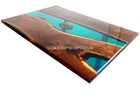 Green Resin Dining Table Acacia Wooden Unique Transparent Epoxy River Resin Deco