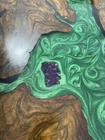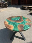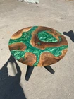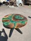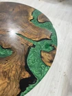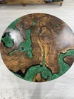 Green Round Natural Wood Table, Dining table, Natural Epoxy Table, Resin Table