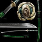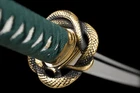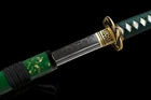 eBay Items Description Condition: Brand-New Blade Material: T10 Steel Clay Tempered Real Hamon Overall Length: 40.5 Inch /104Cm Nagasa Length: 27.8inch/70.5cm Handle Length: 10.6 Inch / 27 Cm Blade Shape: Shinogi Zukuri Blade Edge: Hand Polished Be Razor Sharp Handle Material: Ray Skin + Hard Wooden Blade Width (Near Kissaki): 0.91inch / 2.3cm Width (Near Habaki): 1.26 Inch / 3.2Cm tsuba Material: High Quality Japanese Brass Saya Material: High Quality Wood Saya Tsuka Ito: Chu-kissakireal ray skin covering and real navy silk wrap Bohi:Yes If you need Sword Stand, please click on the image Mekugi:Nr. in bamboo Structure:Maru PACKAGE: 1 x Sword 1 x Sword Bag Tsuba is made of Brass material with elegant patterns. Other accessories are also made of Brass material, so there is no need to worry about fading and discoloration.The sheath is made of wood and Repeatedly polished and lacquered, with beautiful and delicate patterns.The handle(Tsuka) is made of wood, covered with real ray skin inside, wrapped with cotton rope. Sageo is a thick cotton rope, which feels better and looks more beautiful Real katana sword: This katana is a handmade T10 Steel sword for 100%. after more than 10 traditional processes, including annealing, tempering, quenching, and other heat treatment processes, is super sharp and durable. The sheath is made from high-quality wood and oil paint.The blades are hand polished , the blades are very sharp and can be used for real cutting swords. Samurai sword:The samurai sword is very suitable as a collectible, and it is also very suitable as a gift for like-minded friends. But please note that this is a real Katana sword, so please don't point it at people or animals. It is the perfect choice for you as a gift to relatives and friends or for outdoor activities. What you need to do is cleaning it with cloth or tissue.in Daily use, you also should pay attention to maintenance the product.Try not to touch the water. Once it touches the water, you must clean up the water. Avoid remaining moisture on the blade.Be careful do not place in a place where it is wet and in direct sunlight. And its handle is fixed by two "bamboo nails", which greatly enhances the stability of the sword.The rope of the handle is made of pure cotton and wrapped manually. It is very tight, sweat-absorbing and skid-resistant, so as not to slip out of your hand. The blade is forged and polished repeatedly using traditional and unique technology. The surface is very smooth. We Can Customize Your Unique Sword Hamon Type / Blade Struture& Length / Sori / Fittings / Evgrave / Kissaki Type Or You Want Replace This Sword Fitting KATOKU - Sword Forge Copyright