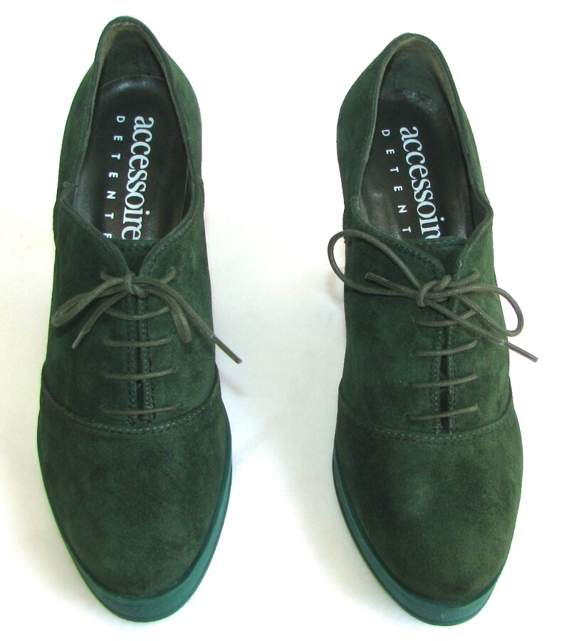 For clothes, I recommend this seller: Lea's pretty things Original shoes - heeled derbies C unfortunate Small tray Round ends Quality velvet leather: thick, flexible and soft Laces Outsole thick , gum antiglisse Size: 37 Colors & Composition: Color: Dark green Upper: Velvet leather Interior: Louble leather leather Under the foot: leather Measures : Heel height on the back: 9.5 cm Tip height: 2 cm Total height, heels included, rear: 24.5 cm Inner sole length: 24.5 cm (take into account the shape of the end) Width at the widest outsole: 8.5 cm NINE Satisfied or reimbursed The photos of my ads are the photos of the items I am selling (no photo taken on the web or in magazines ...) I group your purchases to reduce port costs All my photos are taken in natural light, in order to make the real colors of the items offered for sale as well as possible. Possible color differences in photos of the same article are exclusively due to a variation in daylight exposure. For clothes, I recommend this seller: Lea's pretty things Original shoes - heeled derbies Quality velvet leather: thick, flexible and soft Outsole thick, gum antiglisse Interior: Louble leather leather Under the foot: leather Heel height on the back: 9.5 cm Total height, heels included, rear: 24.5 cm Inner sole length: 24.5 cm (take into account the shape of the end) Width at the widest outsole: 8.5 cm Satisfied or reimbursed The photos of my ads are the photos of the items I am selling (no photo taken on the web or in magazines ...) I group your purchases to reduce port costs All my photos are taken in natural light, in order to make the real colors of the items offered for sale as well as possible. Possible color differences in photos of the same article are exclusively due to a variatio Recommended products Provided by La Fee Maraboutée - Heels 9.5 Cm Black Suede Leather 38 - New & Box View item TOD'S High Heels 9.5 Cm Black Suede Leather Size 40 View item TOD'S High Heels 9.5 Cm Brown Suede Leather Size 40 View item BALLY SUISSE Dorofy Heels 9.5 Cm Gray Suede Size 37 Excellent Condition View item BCBG Generation - Heels 13 Cm + Platform Black Leather 38.5 - NEW View item TOD'S High Heels 10 Cm + Invisible Platform Black Leather Size 38 New View item BALLY Colette Heels 11 Cm Dark Green Suede Leather Size 38.5 EUR 8 US View item Sonata - Classic Shoes Heels 5 CM All Leather Black 37 (38) - New View item