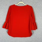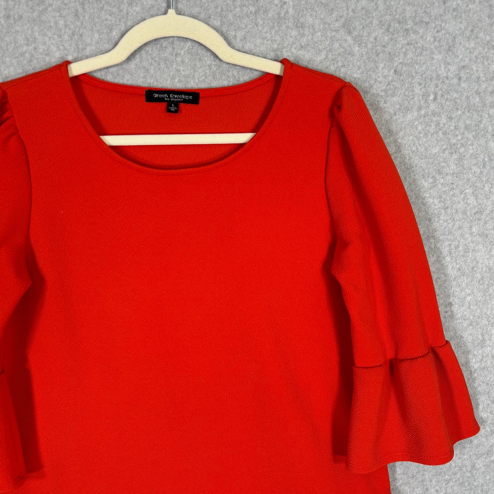 Green Envelope Blouse Large Orange Textured Stretch Twee Royal Ruffle Bell Flare 3/4 Sleeve Corp Career Work Office Business Church Classic Casual Preppy Academia EXCELLENT Pre-owned condition: minimal to no signs of wear, no stains or holes SKU 7012 **Please see all pictures for full item condition, details, and approximate measurements** - Ships Same/Next Day, Professional Seller, Offers Welcome, Like or watch for price drops - Item in photos is exact item you will receive - I list new items daily, be sure to browse my store/closet for more items - Bundle pricing and combined shipping available for additional savings - Feel free to send a message