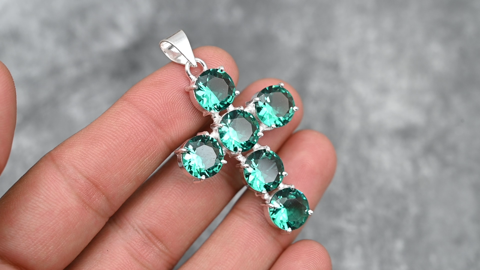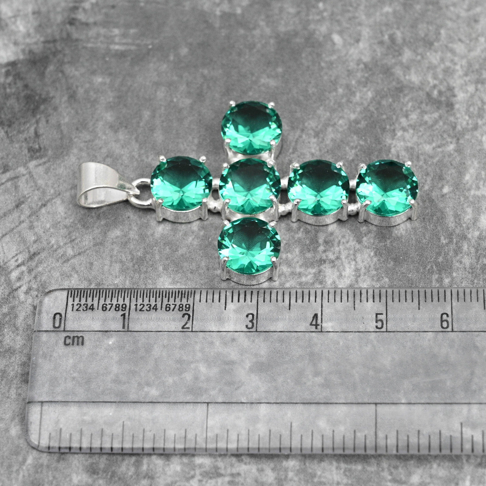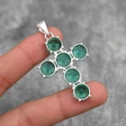 Metal:Sterling SilverType:PendantColor:SilverSecondary Stone:Green TourmalineMain Stone Creation:NaturalNumber of Diamonds:N/AStyle:PendantCertification:N/ACollection:HandmadeBase Metal:Sterling SilverCut Grade:N/ANumber of Gemstones:6Main Stone Color:GreenSetting Style:Same As PictureTheme:Beauty, Bohemian, Ethnic, Halloween, Love, NatureOccasion:Anniversary, Birthday, Christening, Christmas, Engagement, Father's Day, Mother's Day, Valentine's Day, WeddingCountry of Origin:IndiaFeatures:HandmadeMetal Purity:925Material:GemstoneCountry/Region of Manufacture:IndiaPendant Shape:CrossMain Stone Shape:RoundMain Stone Treatment:Not EnhancedMain Stone:Green TourmalineDiamond Color Grade:N/APendant/Locket Type:Same As PictureColored Diamond Intensity:N/AChain Type:N/ATotal Carat Weight:10 carat and aboveBrand:HandmadeNecklace Length:2.16"Diamond Clarity Grade:N/AClosure:Same As Picture