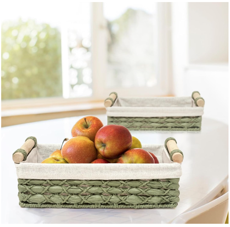 Storage Basket Wicker Baskets for Organizing with Handle Decorative Storage Bins for Countertop Toilet Paper Storage Basket for Toilet Tank Top Small Baskets Set (Set of 2,Green) 1.Great Handmade Storage Basket: This storage bins is all handmade with paper rope custom.Each knot takes our workers a long time to weave.So it's a perfect gift that is completely hand 2.Creative gifts: When you don't know what to give as a gift,it will be a great idea.It can be a gift basket for you friends or family.Your friends or family will absolutely love this creative gift.It will be the perfect finishing touch to your home. 3.Multiple-use Storage cubes: This storage basket not only can be used in your bathroom it also can be used in living room, guest room, kitchen, office etc.All the miscellaneous things in daily life can be used for storage use this basket. 4.Compact storage basket DESIGN: The tank tray neatly fits on top of toilet tanks for a handy place to stash bathroom toiletries and accessories so you or guests have extra necessities easily visible and at your fingertips; Raised sides keep items contained; Slim design allows this basket to be easily stored in cabinets or on dresser tops; Great for jewelry, smartwatches, bracelets, rings and necklaces; Try it on your office desk to keep pens, pencils, tape, scissors, and other supplies organiz 5.Product size: 11.8*7.8*3.*9 inche,9.8*5.9*3.2inches SHIPPING: We offer FREE shipping on all orders! We ship within Three business days of payment, usually sooner. We use a selection of shipping services such as UPS, FedEx, USPS etc. We only ship to the lower 48 states, no APO/FPO addresses or PO Boxes allowed. Local pickups and combined shipping options are not provided at this time. PAYMENT: We accept payment by any of the following methods: PayPal Please pay as soon as possible after winning an auction, as that will allow us to post your item to you sooner! FEEDBACK: Customer satisfaction is very important to us. If you have any problem with your order, please contact us and we will do our best to make you satisfied. Thank you for shopping with us!