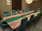 Customization Available, Please Message your desired size and shape This Epoxy Table is a perfect gift for anyone who appreciates the beauty of nature and the art of furniture making. It is a unique and stylish addition to any home decor, whether you're looking for a modern or rustic vibe. Each table is handmade with care, ensuring that no two are alike. Take advantage of the opportunity to own this stunning and unique Epoxy Table - order yours today and bring the beauty of nature into your home. A River Epoxy table is a stunning piece of furniture that combines the natural beauty of wood with the modern aesthetic of epoxy resin. These tables typically feature a live edge slab of wood with a river-like gap running through the center, which is then filled with colorful epoxy resin. The resin can be tinted to resemble flowing water, creating a captivating effect that mimics the appearance of a river coursing through the table. 1. Premium Quality Materials: Our table top is meticulously crafted using high-quality wood and epoxy resin, ensuring durability and longevity. The wood's natural grain patterns and textures add a rustic charm, while the epoxy resin provides a glossy, smooth finish that enhances the overall appeal. 2. Customizable Designs: We offer a range of customizable designs and color options for the epoxy resin, allowing you to create a table top that perfectly complements your existing decorative or design theme. Whether you prefer a bold and vibrant look or a more subdued and classic appearance, we can tailor the table top to suit your preferences. 3. Environmentally Friendly: We are committed to sustainability and responsibly sourced materials. Our table tops are made from eco-friendly wood and resin, making them an environmentally conscious choice for consumers. 4. Sizes and Shapes: We offer a range of standard sizes and shapes to fit different table bases, or we can accommodate custom measurements to suit your specific requirements. Note: This process is whole done by hand and are based on natural wooden purchased log, the table shown in the photos has already been purchased so actual product may vary from the picture shown. We will also share product may vary from the picture shown. We will also share processing images with the buyer step by step.
