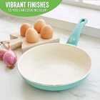 GreenLife Soft Grip Healthy Ceramic Frying Pan/Skillet, 8", Turquoise Product Details Brand: GreenLife Material: Ceramic, PFAS Free Nonstick, Bakelite Handles Special Feature: Dishwasher Safe Color: Turquoise Capacity: 4 Quarts Compatible Devices: stove Product Care Instructions: Dishwasher Safe Maximum Temperature: 350 Degrees Fahrenheit Handle Material: Ceramic Is Oven Safe: Yes Model Name: Soft Grip Has Nonstick Coating: Yes Is Dishwasher Safe: Yes Recommended Uses For Product: versatile stovetop and oven cooking, including sautéing, searing, and frying a variety of dishes Specific Uses For Product: versatile stovetop and oven cooking, including sautéing, searing, frying, and making pancakes and scrambled eggs; not intended for induction stovetop Shape: Round Product Dimensions: 14.37 x 8.27 x 2.56 inches Item Weight: 15.5 ounces Manufacturer: GreenLife Language: English, German, Spanish, French, Dutch Country of Origin: China Item model number: CW000521-002 Is Discontinued By Manufacturer: No HEALTHY CERAMIC NONSTICK: Our healthy and easy-to-clean ceramic nonstick coating is derived from sand and delivers effortless release with quick cleanup TOXIN-FREE: Our coating is free of PFAS, PFOA, lead, and cadmium so you can make every meal healthier STAY-COOL HANDLES: Soft Grip Bakelite handles are designed to stay cool on the stovetop for maximum comfort WOBBLE-FREE BASES: Each frypan is reinforced with a wobble-free base for extra strength and even heating EASY TO CLEAN: Dishwasher safe, but most messes wipe away SNAG-FREE INTERIORS: The rivetless interiors prevent food buildup and make cleaning simple EFFORTLESS PERFORMANCE: Delivers on all stovetops, except induction and oven safe up to 350˚F MADE WITH RECYCLED MATERIALS: Cookware vessels (excluding handles) are made from a minimum of 65% recycled materials This Soft Grip frying pan is all about comfort and control. Designed for effortless performance and cleanup, this pan features our toxin-free Thermolon nonstick coating, which is free of PFAS, PFOA, lead, and cadmium. GreenLife’s healthy ceramic nonstick is not stuck in the past—that’s why our ceramic nonstick starts with sand and creates 60% less CO2 emissions during the curing phase than traditional coatings. This pan is also crafted with recycled aluminum, because we want your kids’s kids to cook healthy, too. Finished in vibrant colors, this pan is outfitted with a stay-cool handle to keep your cooking comfortable. For all stovetops, except induction. Oven safe to 350°F. Dishwasher safe.