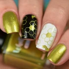 You will receive (1) bottle of Greenback Miner Stamping Polish (Greenish Gold). Size of bottle is 0.37 fl oz (11 ml). 7 Free (No Formaldehyde, No Dibutyl Phthalate (DBP), No Toluene, No Formaldehyde Resin, No Camphor, No Triphenyl Phosphate (TPHP), No Xylene) Cruelty Free & Vegan Made in China Ingredients: Butyl Acetate, Ethyl Acetate, Acrylate, Copolymer, Nitrocellulose, Denatured Ethanol, Acetyl Tributyl Citrate, Isopropanol. May Contain: Mica, CI 77266, CI 77891, CI 19140, CI 15850, CI 15880, CI 42090, CI 77742, CI 77510 Warning: Due to nail polish being considered a hazardous material we are only allowed to ship nail polishes within the continental United States and by ground service. There are no exceptions to this rule no matter what shipping you selected. Please choose FedEx Ground (2-6 business days) or USPS Ground (5-15 business days) shipping on checkout. How To Use: -Remove your new stamping plate from its packaging and remove the plastic protective film from over the metal. When you first receive your plate and after every use wipe clean your plate with acetone or non-acetone nail polish remover without oils. Сlean your stamper with tape by using the sticky side to remove dry polish. -Quickly apply a thick layer of stamping nail polish in a few strokes over the design you wish to stamp. -Hold a plastic card firmly at a 45 degree angle and lightly scrape across the plate to remove excess polish. Try to only scrape once, do not push card to plate too hard and work as quickly as possible to avoid drying. -Immediately after scraping, quickly transfer the design to your stamper by lightly rolling once across the design from one side to the other or pushing once straight into the design. If your image does not transfer you may need to work faster, scrape differently (less pressure or new angle), prime your stamper (with acetone or gentle nail file/buffer) or try another opaque nail polish that doesn’t dry very fast. -Quickly transfer the image from the stamper onto a nail with an oil free and completely dry base color. With a squishier stamper push the stamper straight to the nail, with other stamper heads it might work better to roll it once from side to side to transfer image. Remove excess nail polish from your skin and cuticles by using a flat brush or cotton swab dipped in acetone or nail polish remover, you could use tape to lift excess polish from your skin as well. -When design is completely dry on your nail, apply a layer of fresh top coat with as few strokes as possible. Place a big drop at the cuticle and hold brush parallel to the nail while applying trying not to touch the nail with the bristles, this helps prevents smearing. We love to see your beautiful nail designs!