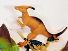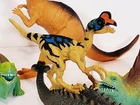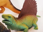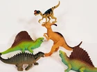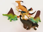 Greenbrier Boli Plastic Dinosaur Figures Lot Of 5 Dilophosaurus Parasaurolopus. Check out that Dilophosaurus holding an egg . Two boly edaphosaurus one is 11/4" longer .and we have a boly pinacosaurus the largest Dinosaur is greenbrier Parasaurolophus great condition