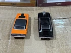 3-piece lot: Darden's orange Dodge Challenger without details, Dom's black Dodge Charger, and new 2011 GreenLight Hollywood Series 4 Fast & Furious Rio Police Dodge Charger The product is a lot of three Greenlight. 2012 Fast & Furious 2010 Rio Police Dodge Charger diecast cars, each in 1:64 scale. These multi-color cars feature the iconic Dodge Charger model from the movie franchise. With a recommended age range of 8 and up, these collectible vehicles are part of the Greenlight Series 4 and are limited edition pieces. Perfect for boys and girls who are fans of The Fast and the Furious, these cars are a great addition to any collection of diecast vehicles.