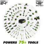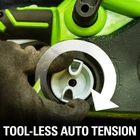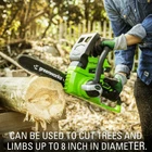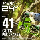 Greenworks 24V 10" Cordless Chainsaw: 24V lithium-Ion battery compatible with both indoor and outdoor tools 10" bar and chain suitable for cutting branches and limbs Tool less chain tensioning for quick adjustments so you can get back to the task at hand 2AH battery included