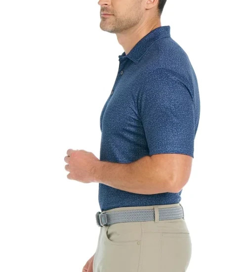 IZOD Golf Men's Blue Leaf Print Polo Shirt Regular Fit Short Sleeve Size Small