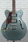 Rock Your World with a Gretsch Streamliner The G2622 Streamliner Center Block Double-Cut is here to make all of your Gretsch dreams come true without the burden of a pro price tag. This impeccably designed guitar packs in classic Gretsch appointments, a warm and resonant 16-inch-wide semi-hollow body, and a V-Stoptail that culminate in an endlessly playable instrument. Its body flaunts a laminated maple top, back, and sides for warm and bright natural tone. In addition, the nato neck and laurel fingerboard with soft C neck shape and 12-inch radius set you up for exceptional playing comfort every time you pick this 6-string up to play. Rounded out with a pair of bold and well-balanced Broad’Tron BT-3S humbucking pickups that can be coil-split by pulling the volume control, the versatile G2622 Streamliner is ready to record, jam, and take to every stage with confidence!5-ply maple body offers excellent definition Maple Sweetwater is an Authorized Gretsch Dealer Genuine Open Box Item Sweetwater's 2-year warranty and 55 point inspection Gretsch G2622LH Streamliner Center Block Double-Cut Left-handed Electric Guitar Left-handed Semi-hollowbody Electric Guitar with Laminated Maple Top, Back, and Sides, Nato Neck, Laurel Fingerboard, and 2 Humbucking Pickups - Gunmetal Rock Your World with a Gretsch Streamliner The G2622 Streamliner Center Block Double-Cut is here to make all of your Gretsch dreams come true without the burden of a pro price tag. This impeccably designed guitar packs in classic Gretsch appointments, a warm and resonant 16-inch-wide semi-hollow body, and a V-Stoptail that culminate in an endlessly playable instrument. Its body flaunts a laminated maple top, back, and sides for warm and bright natural tone. In addition, the nato neck and laurel fingerboard with soft C neck shape and 12-inch radius set you up for exceptional playing comfort every time you pick this 6-string up to play. Rounded out with a pair of bold and well-balanced Broad’Tron BT-3S humbucking pickups that can be coil-split by pulling the volume control, the versatile G2622 Streamliner is ready to record, jam, and take to every stage with confidence! 5-ply maple body offers excellent definition Maple is one of the most lively, bright, and colorful tonewoods out there, which is exactly why Gretsch decided to make their G2622 Streamliner Center Block Double-Cut almost entirely out of this wonderful wood. This semi-hollowbody’s 5-ply arched laminated body offers a full 16-inch width and yields a wonderfully snappy, open tone that, when combined with the balanced character of its Broad’Tron BT-3S pickups, cuts through a dense mix and sounds great in any situation. Feedback-free hollowbody tone You get a lot of tonal bang for your buck with the G2622 Streamliner, thanks to its long center block. Running the full length of the body, the center block allows the otherwise hollow body to resist resonant-frequency feedback. At Sweetwater, we’ve found that this weight-relieved center block lets us rock out louder, with more gain, without our amplifier squealing out of control. Exceptional sonic flexibility Pick up the G2622 Streamliner, and you'll quickly realize you can pull off some tonal tricks you may have figured weren’t within this 6-string's grasp. With a volume control for each pickup, you can create the perfect balance between warmth, bite, and brilliance when both pickups are engaged. The master tone control lets you fine-tune your sound once you’ve got the pickups dialed in. Use the master volume control to take your tube amp from clean to growling without changing the balance between your pickups. Or, simply pull up to enable single-coil tone tapping for even greater sonic range! Gretsch G2622LH Streamliner Center Block Double-Cut Features: Semi-hollowbody electric guitar with classic Gretsch styling 5-ply, 16-in.-wide maple body delivers an incredibly snappy, open tone Broad’Tron BT-3S humbuckers balance out your tone beautifully Weight-relieved center block yields feedback-free hollowbody tone Highly playable soft C-shaped nato neck with laurel fingerboard 3 volume controls and 1 tone control create exceptional sonic flexibility 3-way toggle switch to select pickup configuration Push-pull coil-splitting at the master volume control allows you to tap into single-coil tones Specification Detail Number of Strings 6 Left-/Right-handed Left-handed Body Type Semi-hollowbody Body Shape G2622 Streamliner Body Material Laminated Maple Top Material Laminated Maple Color Gunmetal Body Finish Gloss Neck Material Nato Neck Shape Soft C Neck Joint Set Neck Radius 12" Fingerboard Material Laurel Fingerboard Inlay Pearloid Neo-Classic Thumbnail Number of Frets 22 Scale Length 24.75" Nut Width 1.6875" Nut Material Bone Bridge/Tailpiece Anchored Adjusto-Matic Bridge with Gretsch V-Stoptail Tuners Die-cast, Closed Gear Neck Pickup Broad'Tron BT-3S Humbucker Bridge Pickup Broad'Tron BT-3S Humbucker Controls 2 x volume, 1 x master volume, 1 x master tone Switching 3-way toggle pickup switch Strings NPS, .010-.046 Case/Gig Bag Sold Separately RETURN INFORMATION We want you to be completely happy with your purchase from Sweetwater. If you are not satisfied with your product, you may return it for a refund of the purchase price within 30 days. If your purchase was eligible for Free Shipping, the shipping cost will be deducted from your credit or refund. Returns must be in the complete and original packaging with all accessories and complete documentation (Owner's Manual, warranty card, quick start guides, etc.), show no signs of wear or use, and include a Return Authorization number or be subject to a restocking fee.
