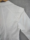 Welcome to Aspen Crossing, your destination for modern western bohemian style reflecting the rugged beauty of our American West Gretty Zueger Top Womens Small White Western Bohemian Embroidered Crochet Lace Button Up 21" LENGTH: Measured from the top of the shoulder to the hem. 16.5" CHEST WIDTH: Underarm to underarm, measured flat from left to right. 18" SLEEVE LENGTH: Measured from the underarm to the hem. It is always best to compare the measurements above with a top that fits you comfortably. CONDITION - Excellent pre-owned condition. All items are cleaned per EBAY standards. Not spot treated. See the photo gallery to view this items measurements and condition. SHIPPED - USPS First Class Mail unless item weight requires priority mail. RETURNS accepted, must be returned within 30 days in original condition to receive a full refund. SHIPPING AND HANDLING We ship all packages within five business days Monday through Friday except Holidays. Consolidated shipping is available for multiple purchases. Thank you for helping our planet and buying previously owned and loved items. I am grateful for your business. Enjoy! Check out our eBay store and follow us. There are new listings daily. CUSTOM SKU: Disclaimer: While we make every effort to capture the most accurate depiction of every item when photographing, colors may vary from screen display to in person therefore we cannot guarantee exact shade on any item. Message us if you have questions.