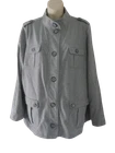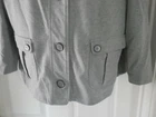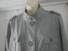 This coat is in excellent condition. It is a lovely quality. It is made from 65% Polyester and 35% Cotton It is a warm grey colour. It is versatile and a great addition to any wardrobe. It is a size Large and measure 25" from underarm to underarm when laid flat. It is 27" long from shoulder to hem