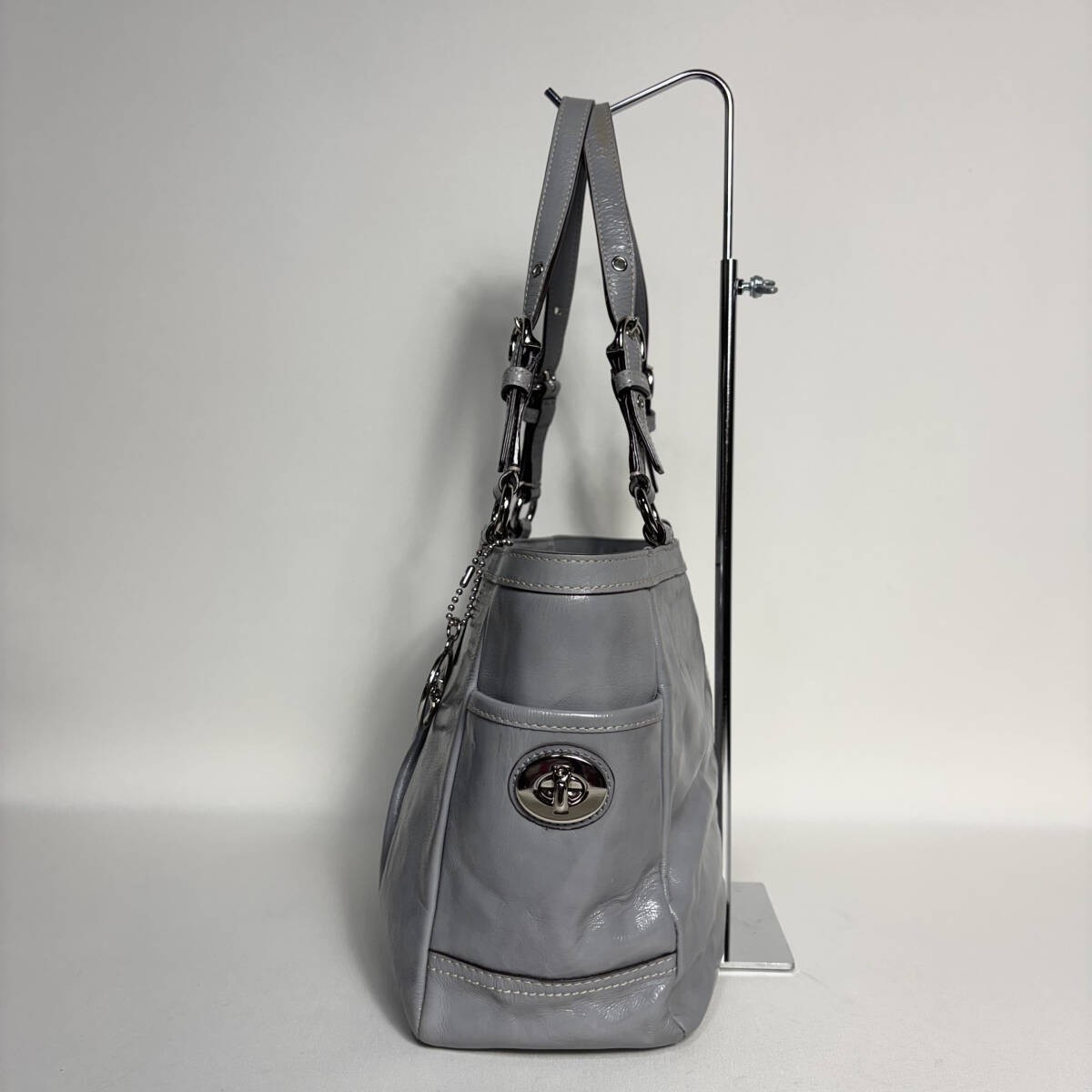 This Coach handbag is absolutely stunning! The grey enamel leather is sleek and luxurious, perfect for both casual and formal looks. The craftsmanship is top-notch, and the seller packaged it with great care—arrived in perfect condition. Highly recommend for anyone looking for a stylish, high-quality bag!
