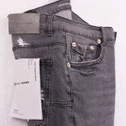$ 15.2Black Purple Brand Designer Personality Men Jeans Plaid Pocket Slim Fit Jeans