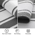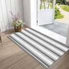 Washable: The cotton washable rug is a soft and easy-care natural material you can machine wash. We recommend washing on a cold, gentle cycle with a mild detergent and air drying to minimize shrinking. At the same time, regular vacuuming will help keep your washable rug looking new for longer and prevent dirt on the rug's surface from getting embedded Persistent: Our tightly woven rug is both reliable and fade-resistant, perfect for high-traffic areas as they keep the shape of the carpet for longer, are more robust, more resistant to stains, and last longer. Worth the money Classic Design: Grey and White Striped Outdoor Rug. Add a bit of your style to your space with this black and white striped rug featuring a white background and pattern of black stripes, a modern and timeless design! Perfect for front door decorations Versatile: black and white striped rug. A rug for all seasons! This substantial rug is terrific for busy areas of your home: Front porch, layer under a doormat, hallway, home office, trendy front door, laundry room, ' room, porch decor, RV, entryway, living room, bedroom, playroom, bathroom, kitchen, patio or basement. It can also be given as a gift to others Rug Pad Need: It's a woven rug made of cotton and doesn't have a rubber backing. A rug pad grips the area rug to prevent it from sliding around
