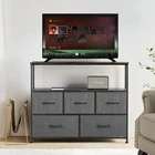 Product Description All fabric surfaces of the dresser are made of non-woven synthetic fibers, providing a comfortable touch, breathability, and wear resistance. Ensure air circulation in the space while storing items to avoid moisture and odors. The drawer handle is made of high-quality plastic, lightweight and durable. The wardrobe uses hard metal as the frame, combined with high-quality medium density fiberboard as the desktop, with a load capacity of up to 66 pounds. The four foot supports can be freely adjusted according to the height of the ground, and are equipped with anti tipping components to ensure stability. Bedroom furniture Smooth desktop provides you with more opportunities for use. It can be used as a TV desktop, dressing table, bedside table, common item storage area, and so on. Paired with the storage space below, it brings you a better life experience. Our wall cabinets come in different sizes for you to choose from, with smaller ones available for children's rooms to learn how to organize themselves. Large ones can be placed in cloakrooms, hallways, and utility rooms, and can also serve as TV cabinets. Help you plan the space of your house reasonably. We provide necessary parts and installation tools in the packaging, equipped with detailed installation instructions, and can be easily operated by one person. A minimalist style that combines metal and fabric, suitable for any area of the home, such as the living room, bedroom, study, etc. Product Dimensions 11.81"D x 38"W x 30.7"H Color Grey, Black, White, Rust Brown Mounting Type Ground Room Type Kids Room, Dressing Room, Bedroom, Living Room, Playroom Special Feature Space Saving Product Care Instructions Wipe with Dry Cloth Assembly Required Yes Model Name Multiple Drawers Organizer Storage- Item Weight 30 Pounds Size TV5-Drawers Item Weight 30 pounds Package include: 1 set of 5 Drawers Dresser