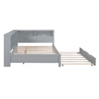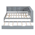Elegant design: This daybed is designed with pine wood material, available in grey or white color. It is not only suitable for any home decoration, but also designed to last forever. Daybed Frame with Charging Station: This unique full size daybed frame is designed with a USB port charging station to allow you to charge or use electronic devices while you sleep, providing even more convenience and comfort. Space-saving:The daybed includes one trundle, which can be rolled out to provide extra sleeping space. This design is ideal for families with children or users who need to host guests frequently. There is a double-layer storage shelf next to the bed, where users can store bedding, toys and other items. Superior Quality: Made of high-quality MDF, the frame of this bed is not easy to be affected by humidity change and lead to crack. The strong legs, wide boards and 10 slats for bed,not only improve the weight capacity of the bed greatly but also ensure the stability. Product Dimension: Overall Product Dimension: 83.9"L X 63.3"W X 36.6"H. Bed suitable for Full size mattresses. Wooden Full Size DayBed with Trundle, DayBed with Storage Shelf and USB Charging Ports, Grey This daybed is designed with pine wood material, available in grey or white color. It comes with a double-layer shelf for convenient storage and one pull-out bed for extra sleeping space. In addition, it is equipped with a USB charging station for electronic devices. This design is not only practical but also stylish, making it an ideal choice for any modern bedroom. The solid pine wood frame ensures durability and stability, while the sleek and minimalist design adds a touch of elegance to any room.